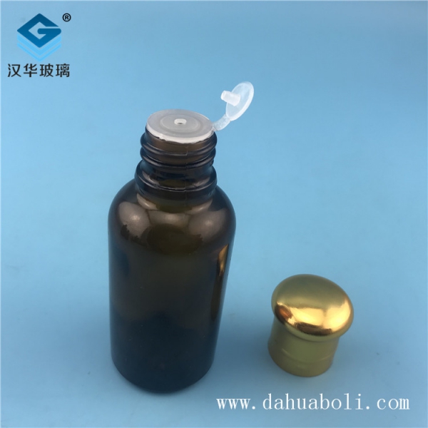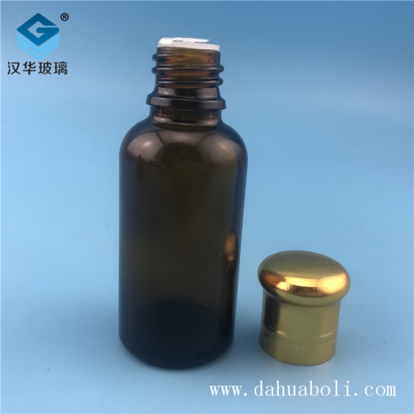 30ml電鍍大頭蓋茶色玻璃精油瓶