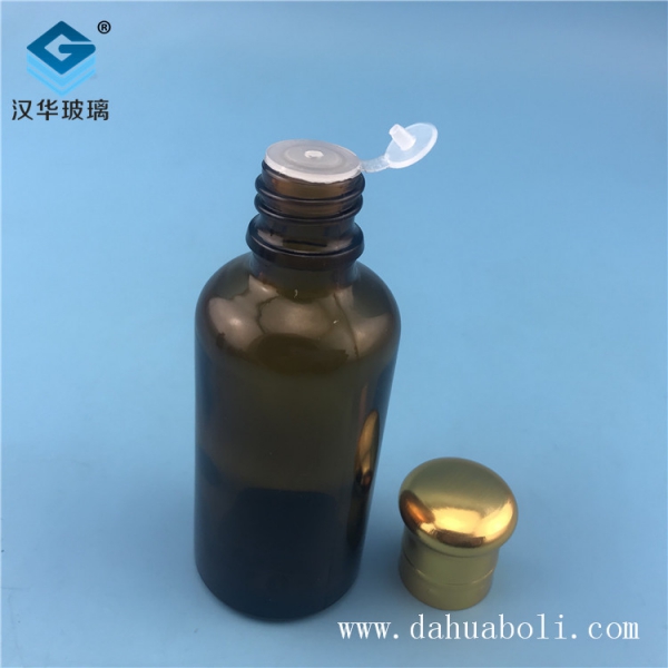 50ml電鍍大頭蓋茶色玻璃精油瓶