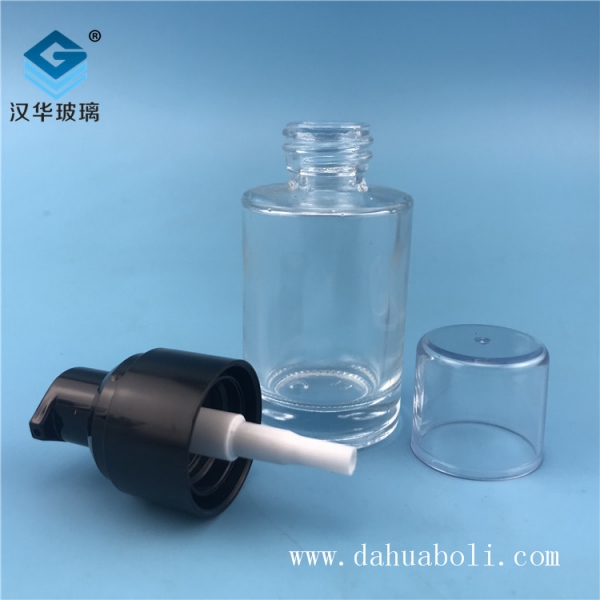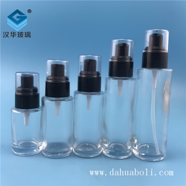 30ml塑料黑蓋透明玻璃乳液瓶