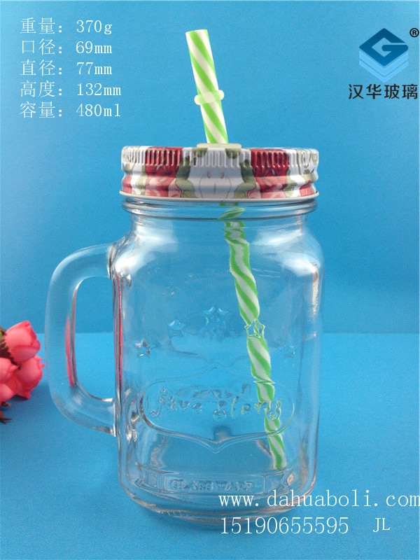480ml五星梅森玻璃手把杯